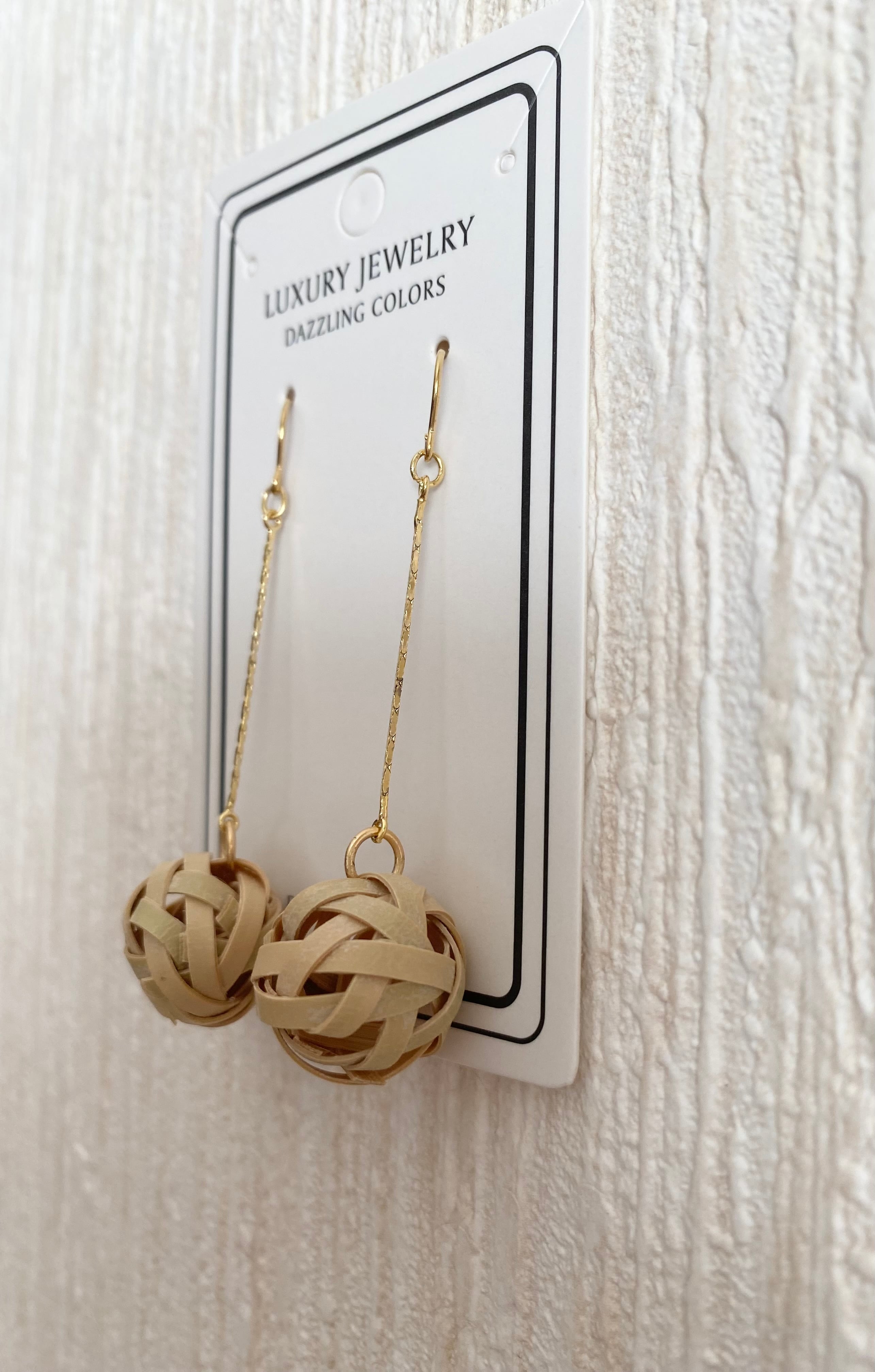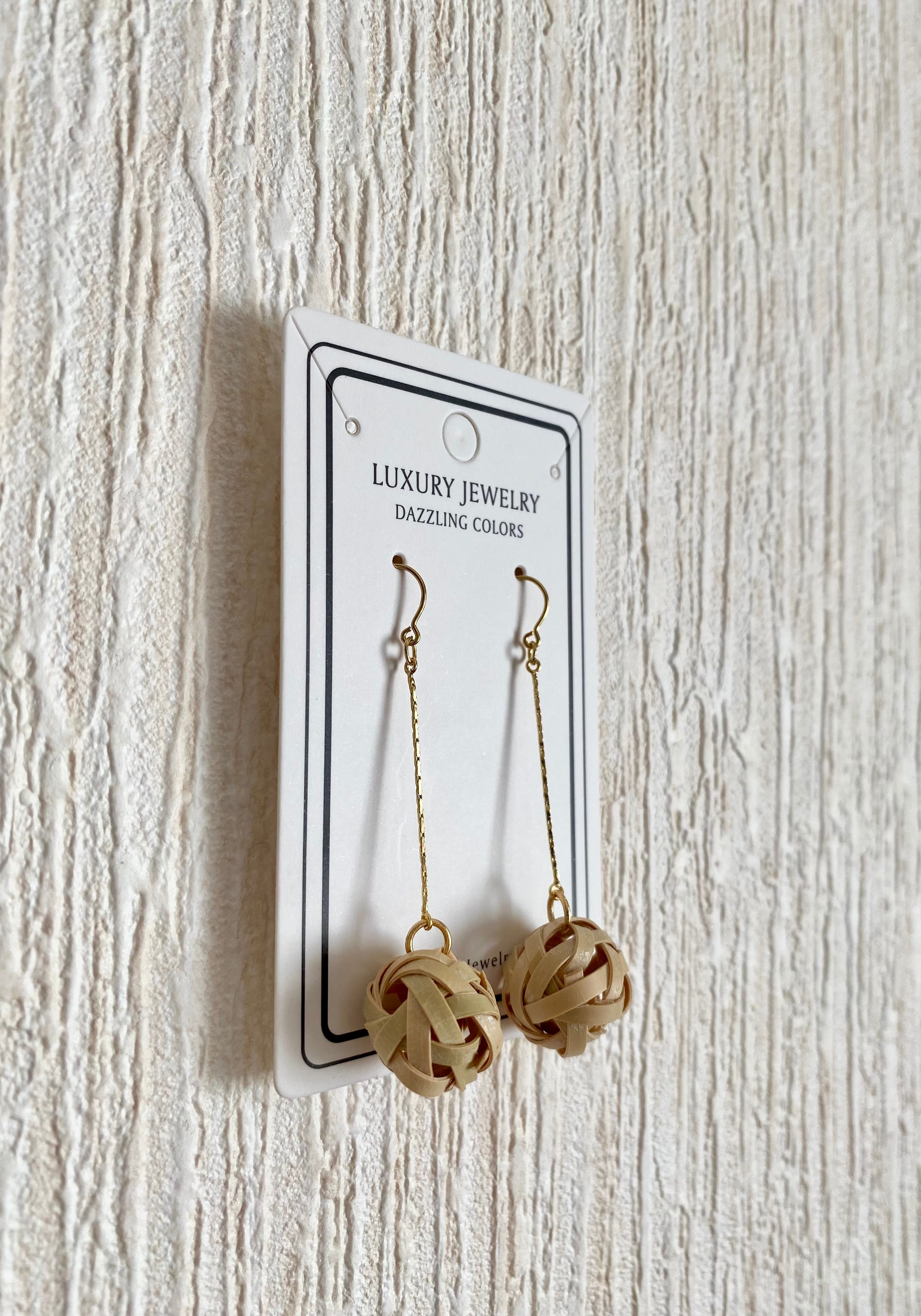 天然の晒竹を細く割いて編み込んだ丸玉を主役にした、